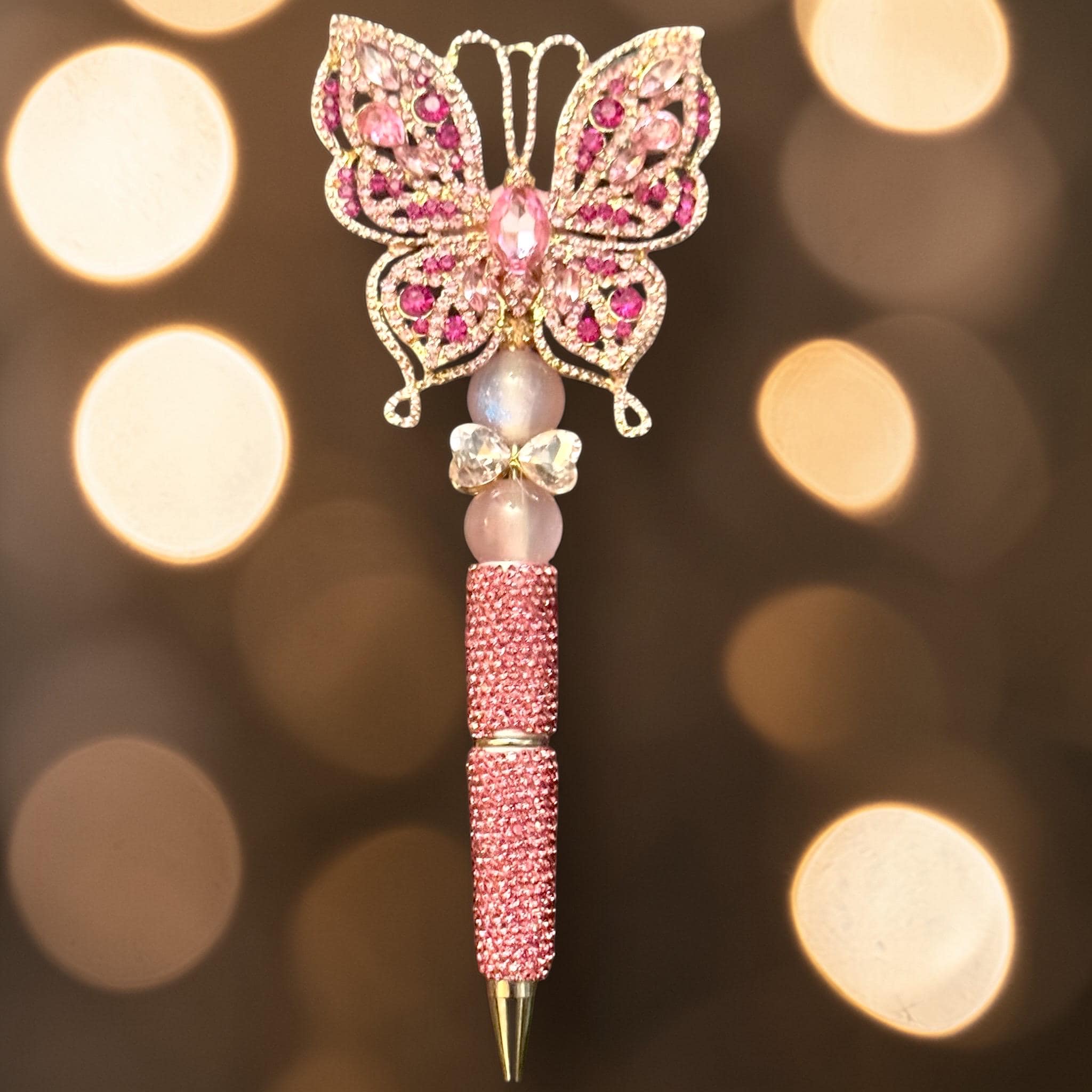 Indulge in the charm of the Crystal Pink Butterfly Rhinestone Pen, a flawless fusion of sophistication and whimsy. Designed to inspire creativity and add a sparkle to your everyday, this pen is more than just a writing tool—it's a statement piece to express your unique style.
