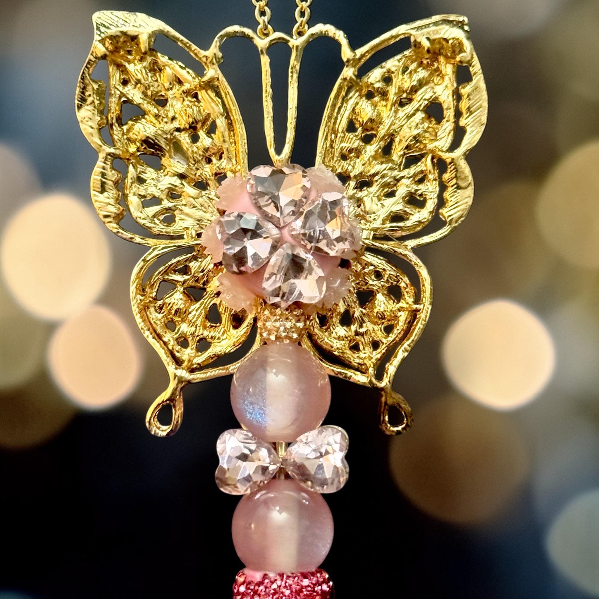 Stunning Butterfly Design: Encrusted with vibrant pink rhinestones, the butterfly topper exudes elegance and beauty.
