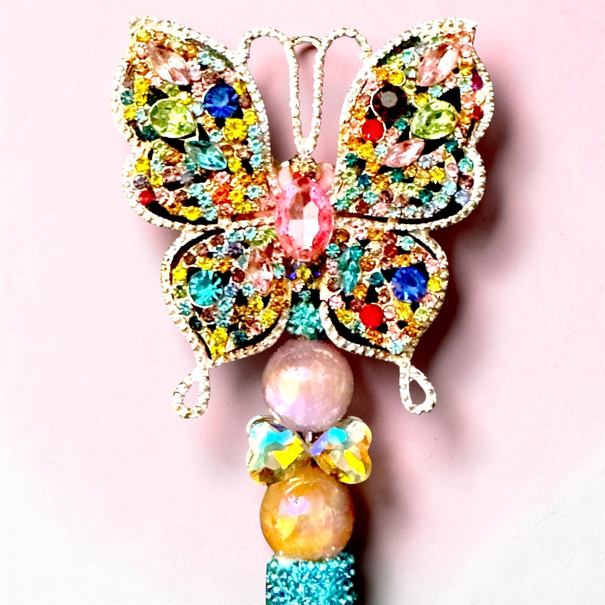 Glamorous Design: Features a vibrant crystal butterfly adorned with multi-colored rhinestones for a stunning, whimsical flair.